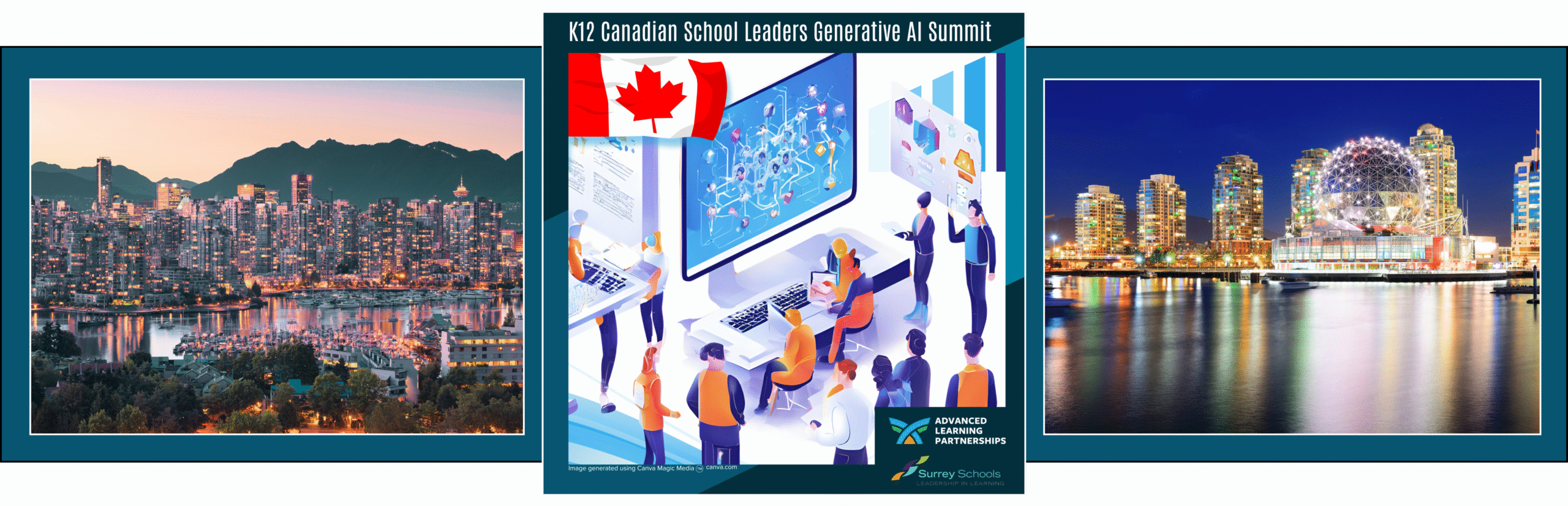 The Canadian K-12 GenAI School Leadership Summit brought together educational leaders, researchers, and partners from across Canada to explore the role of generative AI in schools. Hosted at Surrey Schools’ Resource & Education Centre, the two-day gathering created space for dialogue around pedagogy, ethics, governance, and practical strategies.